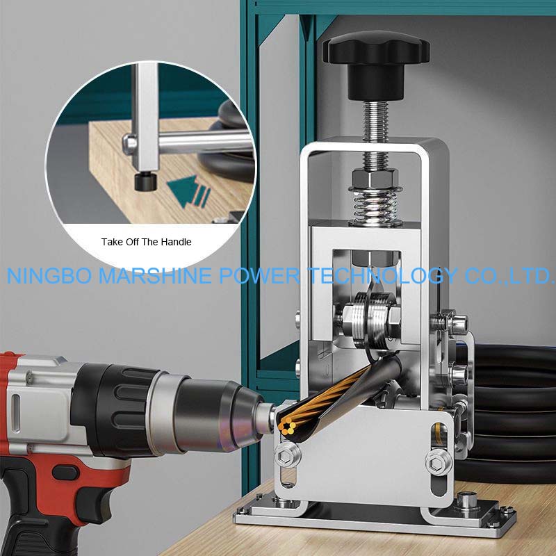 Vores MARSHINE håndskruede stålramme bærbare trådafisoleringsmaskines arbejdsprincip er at bruge klinge til at strippe tråd, uden behov for varme eller ild. Denne wire stripper er manuel wire stripper formet af solid stålramme, med manuel håndsving, den kan afisolere meget godt, men uden elektricitet. Det er perfekt til at fjerne kobbertrådene fra kablet til genbrug eller genbrug eller videresalg. Det justerbare klingesystem og en bred vifte af kompatibilitet med trådstørrelser gør dette værktøj ekstremt omkostningseffektivt og praktisk til elektrikere, værksteder og genbrugscentre.