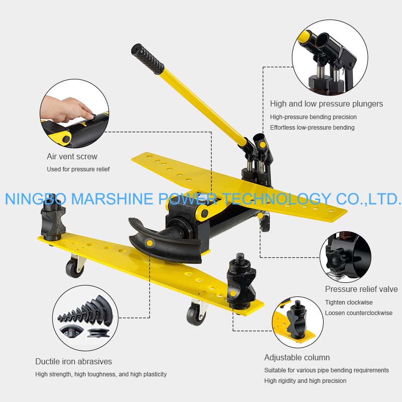 Dette MARSHINE SWG manuelle type hydraulisk rørbøjningsudstyr giver mulighed for en række forskellige bukkematricer til forskellige rørdiametre, der bruges i byggeri og elektrisk arbejde osv.
